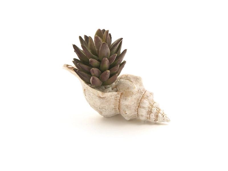 CONCHIGLIA C/PIANTA GRASSA CM16X12 VERDE/MARRONE