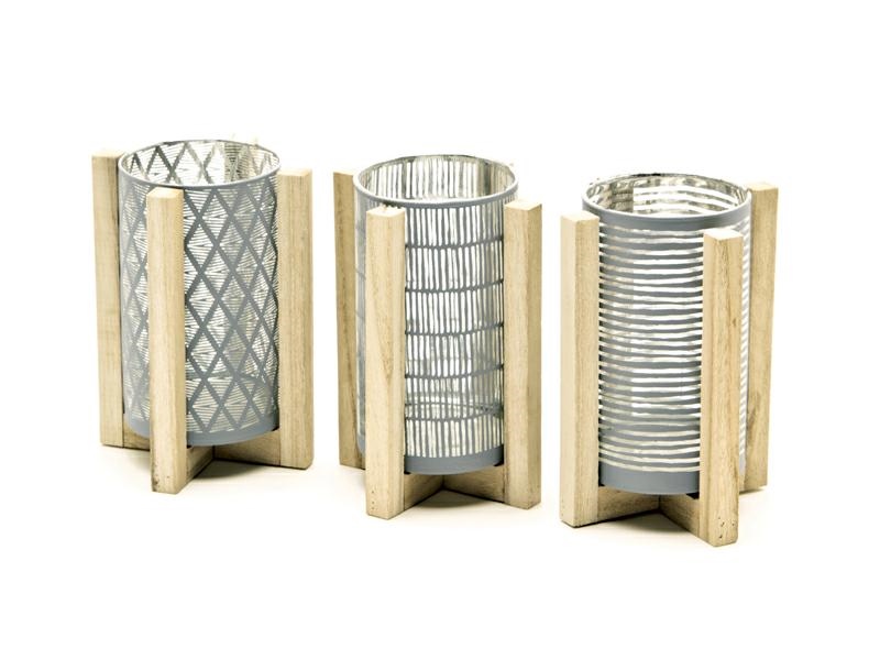 PORTACANDELA STYLE C/BASE LEGNO D12 H17 ASS GRIGIO