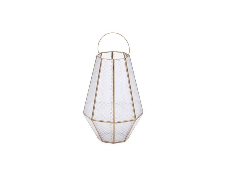 LANTERNA METAL TEXTURE C/BASE SPECCHIO CM28X28X38 ORO