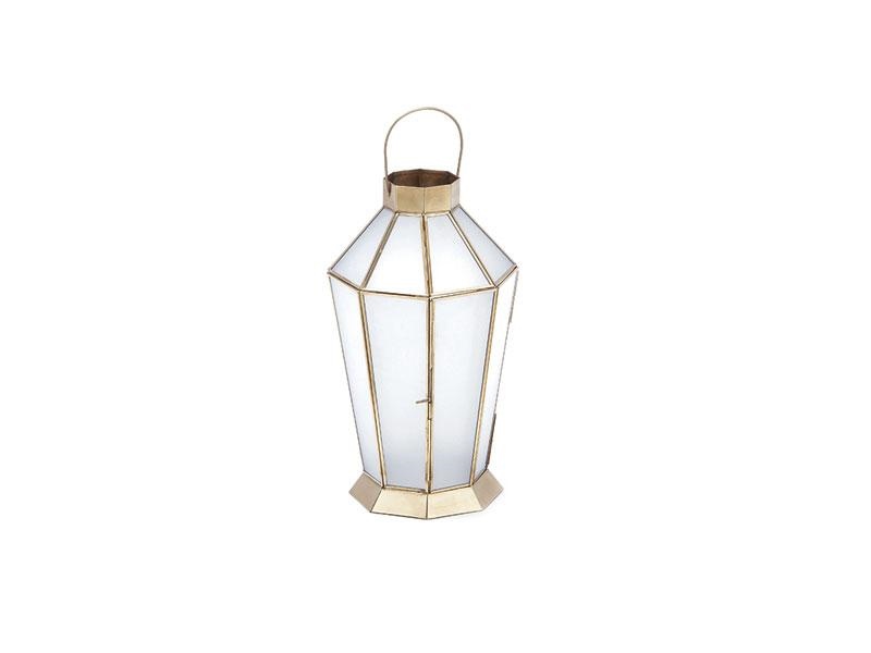LANTERNA METAL FOGGY GLASSES CM22X22X39 ORO/BIANCO
