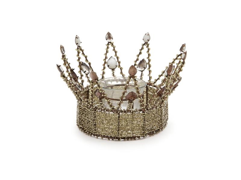 PORTA TEALIGHT CROWN C/PIETRE E PERLINE
