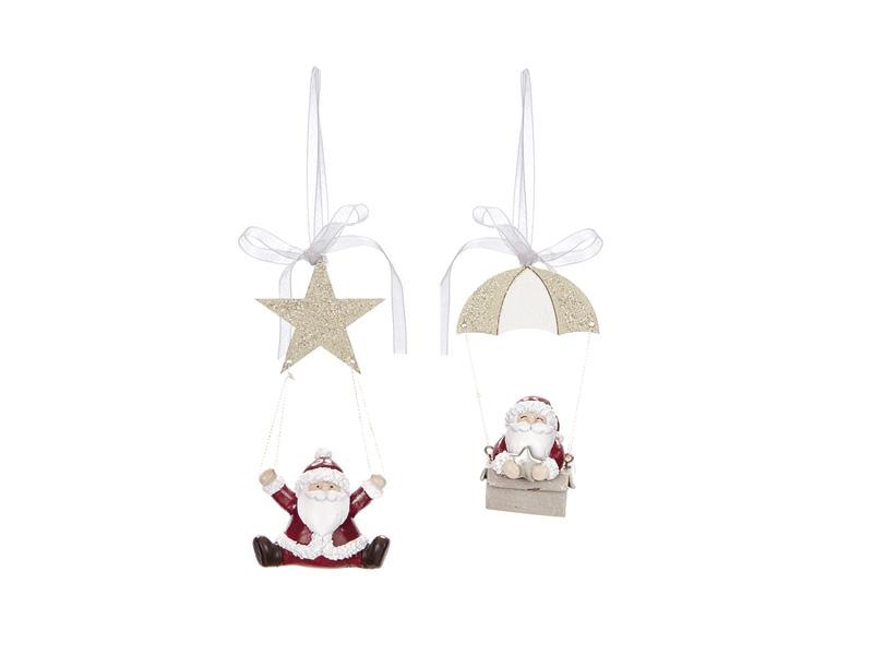 DECORAZIONE PENDENTE RESINA FLYING SANTA D7 H14 ASS