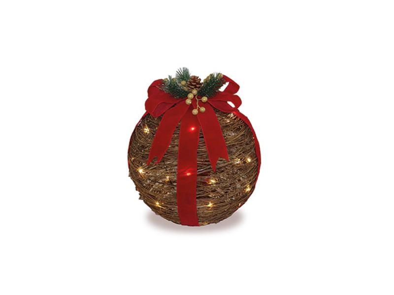 SFERA LUMINOSA D35 RATTAN C/FIOCCO VELVET C/25 LUCI LED A BATTERIA (
