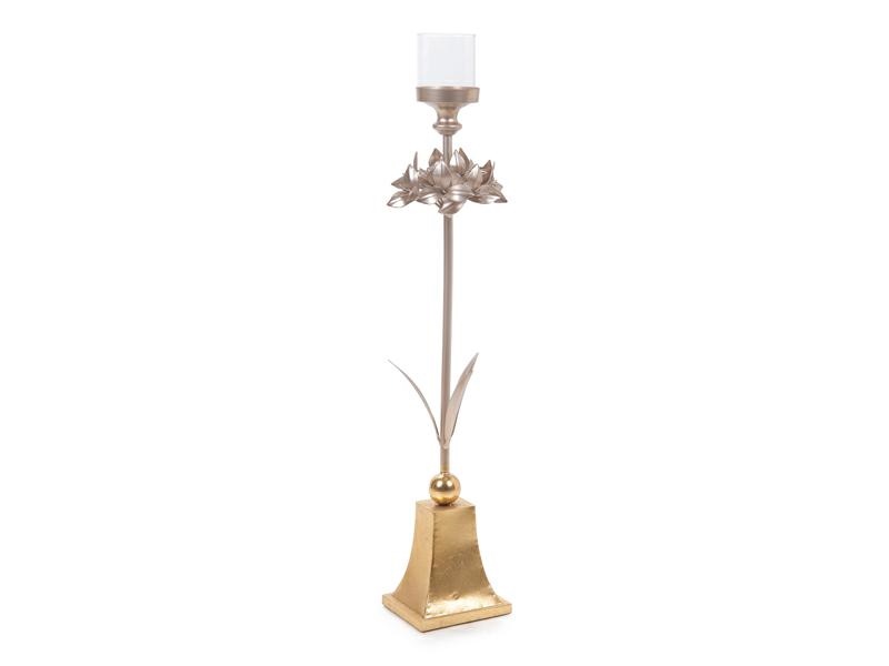 CANDELIERE LEAVES D15 H81 METAL ORO E CHAMPAGNE