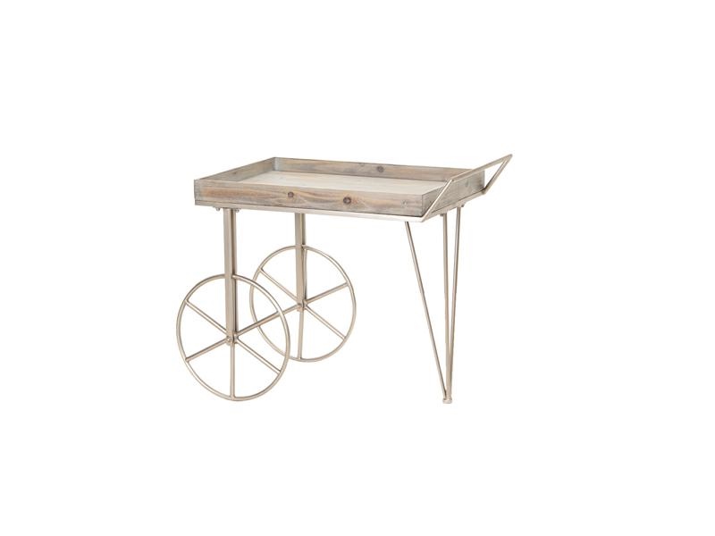 CARRETTO C/2 RUOTE CM80X50X70 METALLO E LEGNO CHAMPAGNE