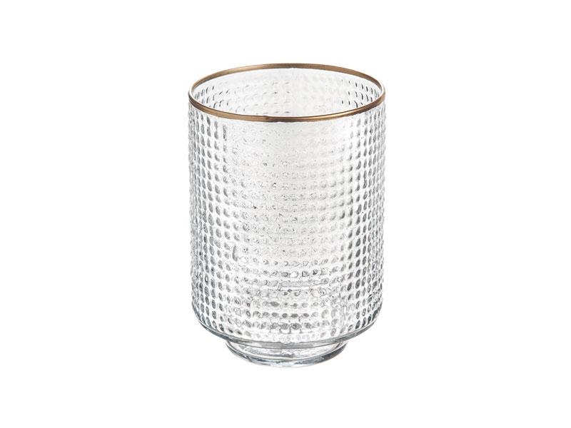 BUGIA VETRO PIXEL C/BORDO ORO D15 H21 TRASPARENTE