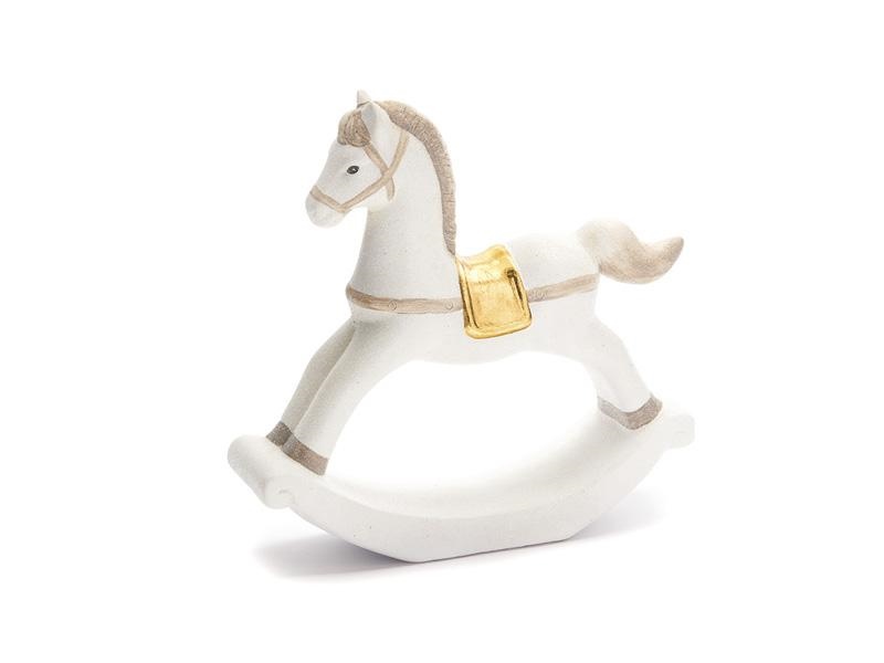CAVALLO A DONDOLO CERAMICA CM30X29 BIANCO GLITTER/ORO