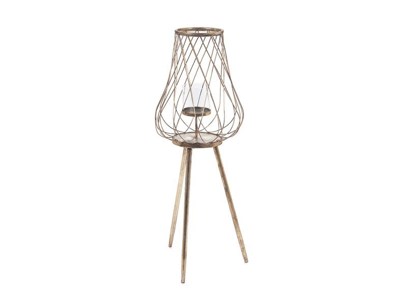 LANTERNA METAL CAGE C/3 PIEDI CM33X90 OLD GOLD
