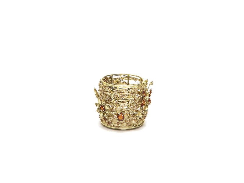 PORTA TEALIGHT TANGLED C/PIETRE CM8X10 ORO/AMBRA