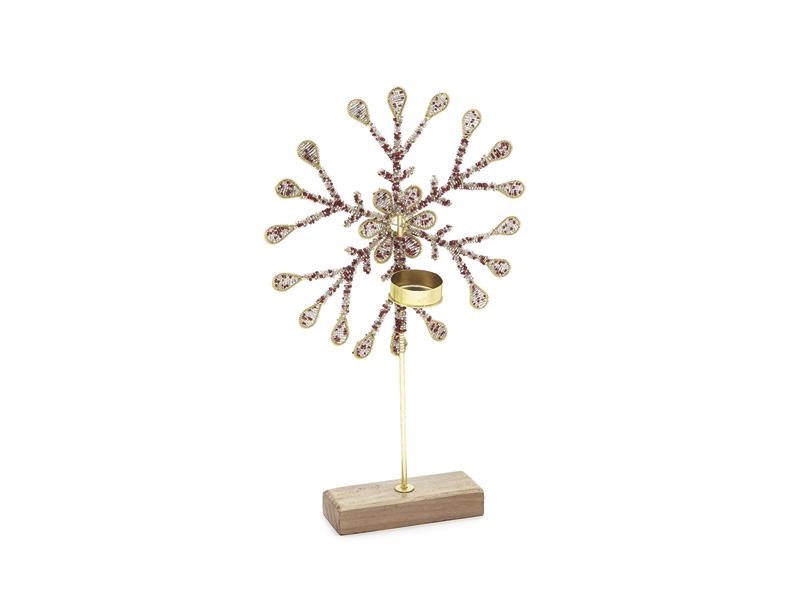 PORTA TEALIGHT SNOWFLAKE C/BASE LEGNO CM23X37 ROSSO/ORO