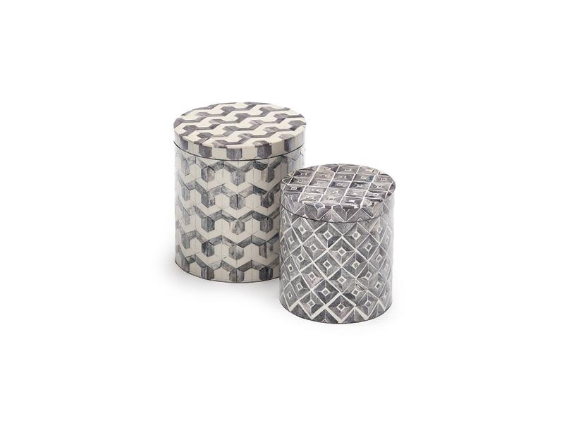 SET 2PZ BOX BONES TONDE CM16X16X18-12X12X15 BEIGE/GRIGIO