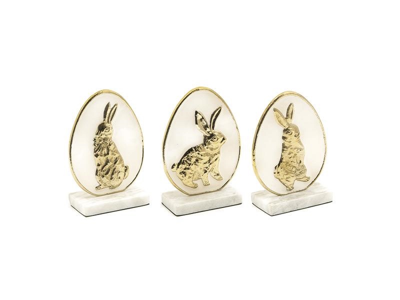 UOVO ALLUMNIO C/CONIGLIETTO SU BASE MARMO CM11X15 BIANCO/ORO