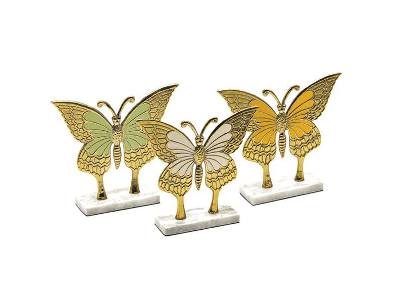 FARFALLA ALLUMINIO SU BASE MARMO CM20X19 BIANCO/VERDE/ARANCIO