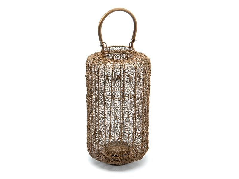 LANTERNA METAL TISSAGE C/PARAFIAMMA CM25X45 ORO ANTICATO