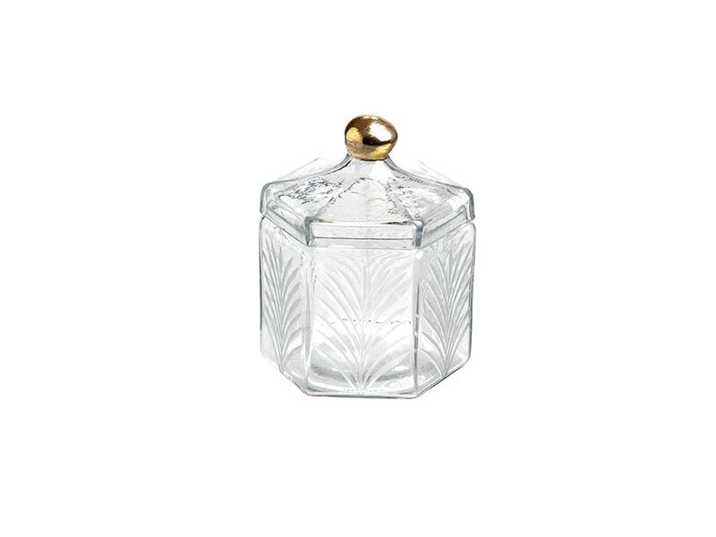 BARATTOLO ESAGONALE VETRO C/POMELLO DORATO CM13X16 TRASPARENTE