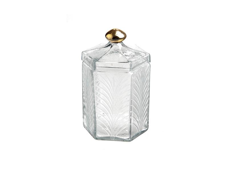 BARATTOLO ESAGONALE VETRO C/POMELLO DORA
