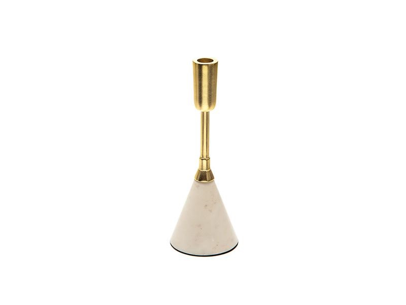 CANDELIERE ALLUMINIO C/BASE MARMO H28 ORO/BIANCO