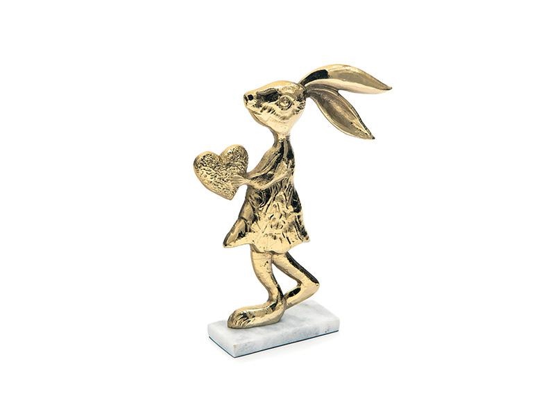 CONIGLIETTO METAL HEART C/BASE MARMO CM20X27 LIGHT GOLD