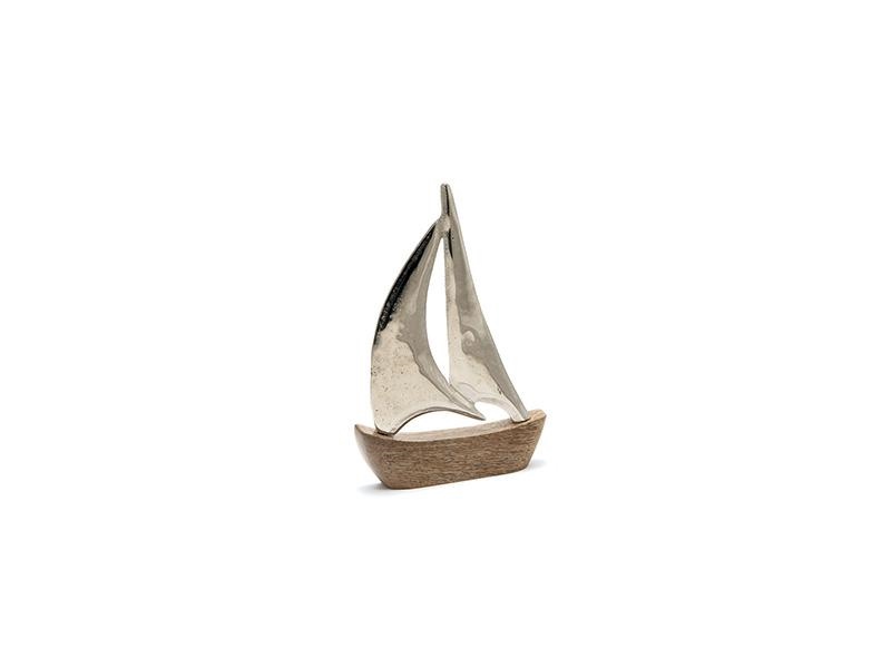 BARCA A VELA ALLUMINIO C/BASE LEGNO CM18X30 SILVER
