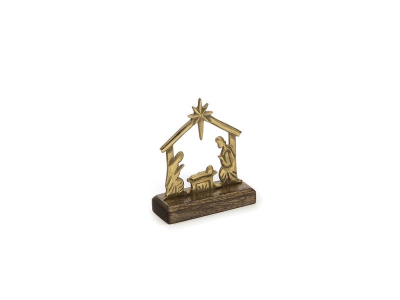 NATIVITA' METAL C/BASE LEGNO CM12X15 MOGANO/ORO