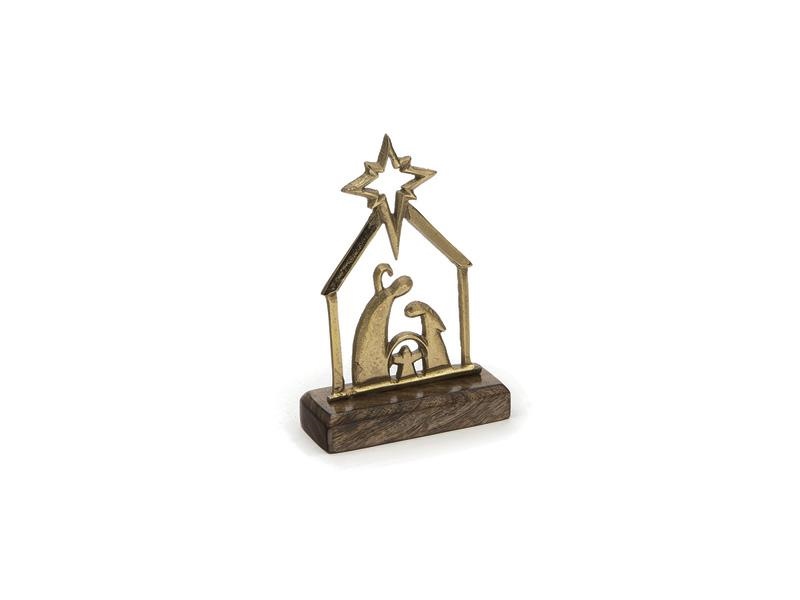 NATIVITA' METAL C/BASE LEGNO CM11X25 MOGANO/ORO
