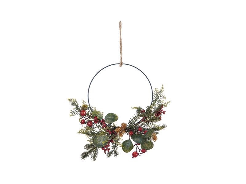 CORONA SLIM PINO BACCHE EUCALIPTUS D40 VERDE/ORO/ROSSO