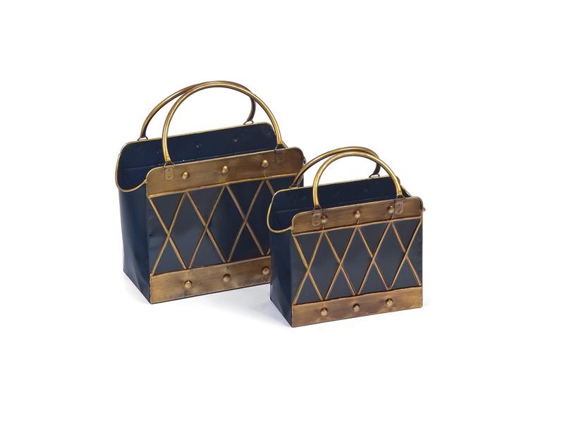 SET 2PZ BORSE LATTA CM34X14X36-28X11X29 BLU/ORO