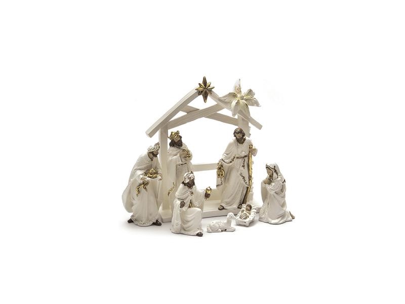 SET NATIVITA' RESINA 7PZ + CAPANNA CM24X30 BIANCO/ORO